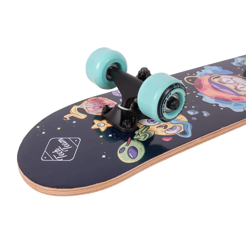 Яркий дизайн делает эту модель неповторимой: нижняя часть деки украшена крутым принтом в голубых тонах с изображением космоса и инопланетян. Это не просто товары для спорта, это - произведение искусства на колесах.