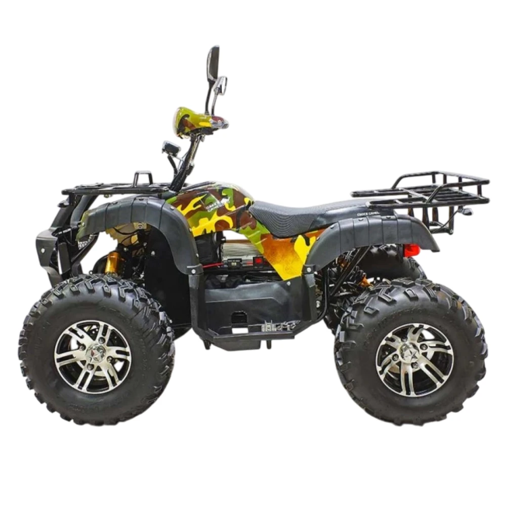 GreenCamel Sahara AWD 4x4 – отличный квадроцикл производимый в России. Он прекрасно подойдёт как подросткам возрастом от четырнадцати лет, так и взрослым. Его максимальная нагрузка: двести килограмм. GreenCamel Sahara AWD 4x4 можно разогнать до скорости 40 км/ч. На все колёса установлены дисковые гидравлические тормоза. Есть трехскоростной переключатель с ключом. Также имеется: фаркоп, зеркала, поворотники, сигнал, LCD дисплей. Имеется возможность отключать передний привод. Установленную штатную батарею 52Ah SLA GEL можно заменить на более ёмкую. Штатная, заряжается полностью за восемь часов и позволяет проехать 35 километров (при использовании обоих приводов) или 75 километров (при использовании одного привода).
