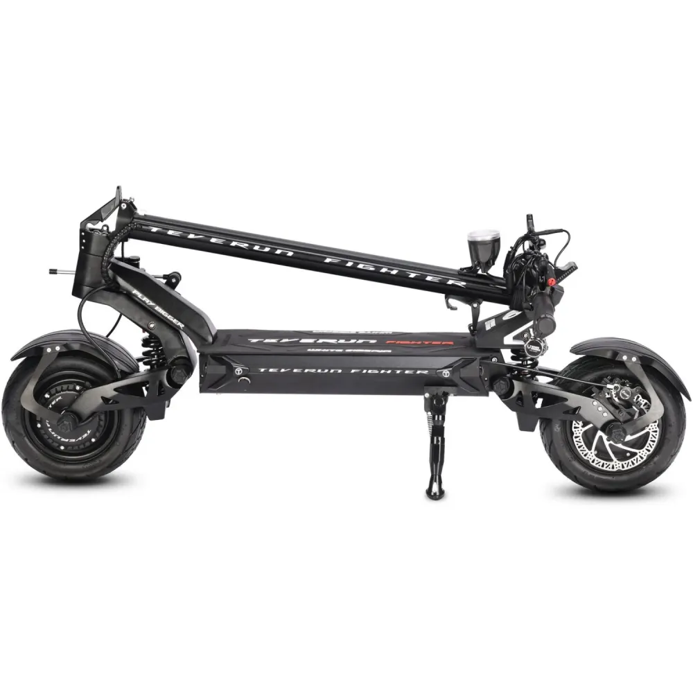 Купить электросамокат WHITE SIBERIA TEVERUN FIGHTER 6000W. Модель TEVERUN FIGHTER 6000W представляет хорошую линейку мощных электросамокатов от компании WHITE SIBERIA. Электросамокат TEVERUN FIGHTER 6000W имеет полный привод и электродвигатель 2 x 60V 3000W, суммарно 6000W на электрической тяге, что помогает достигать на дороге скорость до 85 км/ч и получить яркие эмоции от поездки по дорогам вашего города. Модель TEVERUN FIGHTER электросамоката была создана для поклонников хорошей и быстрой езды по городу. TEVERUN FIGHTER 6000W хорошо заряжается от обычной электрической розетки в домашних условиях за 17 ч и имеет запас хода до 80 км на одном заряде. Электросамокат TEVERUN FIGHTER 6000W имеет яркую LED подсветку и электросамокат хорошо заметен на дороге в темное время суток, что не оставит вас без внимания на дорогах. Купить электросамокат WHITE SIBERIA TEVERUN FIGHTER 6000W и аксессуары для вашего электросамоката можно в нашем интернет магазине на сайте, звонок менеджеру  гарантирует хорошую покупку.