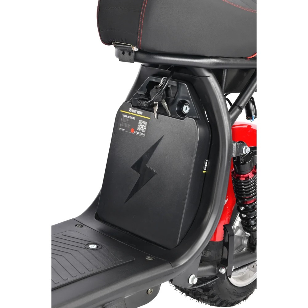 Электроскутер CityCoco WS-Pro+ 2500W – произведенная в красных цветовых оттенках техника способна доказать совершенство езды на практике. Пневматические агрессивные колеса, по внешнему виду напоминающие шины внедорожника созданы для езды по городской местности и бездорожью. Убедиться в технических характеристиках можно прямо сейчас. Предлагаем сделать заказ и купить электроскутер в нашем интернет-магазине.