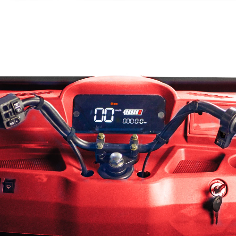 Представляем вашему вниманию Rutrike КАРГО Кабина 1500 в ярком красном цвете. Этот грузовой электротрицикл оснащён закрытым кузовом, что позволяет работать в любых погодных условиях, обеспечивая комфорт и защиту водителя. Просторный грузовой отсек размером 1500×1050×330 мм позволяет перевозить до 600 кг груза. Мощный мотор 1000 Ватт обеспечивает пробег до 40 км на одном заряде, а максимальная скорость достигает 25 км/ч. Мотоциклетный руль обеспечивает удобное управление, а задний барабанный тормоз гарантирует надежную остановку. Идеальный выбор для эффективной доставки в городе.