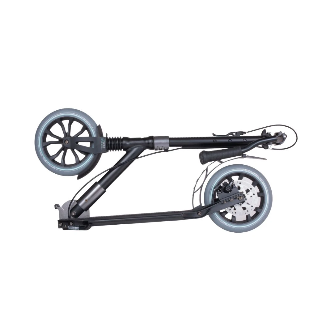 Компактная и эргономичная техника весит 6,5 кг. При необходимости может складываться по современной схеме достигать минималистичных размеров, удобных для транспортировки в авто и хранении. Руль, широкий, удобный, не вызывает усталости при длительной езде. Изготовлен из ударопрочного облегченного материала, выдерживающего механическое воздействие и езду в жестких условиях.