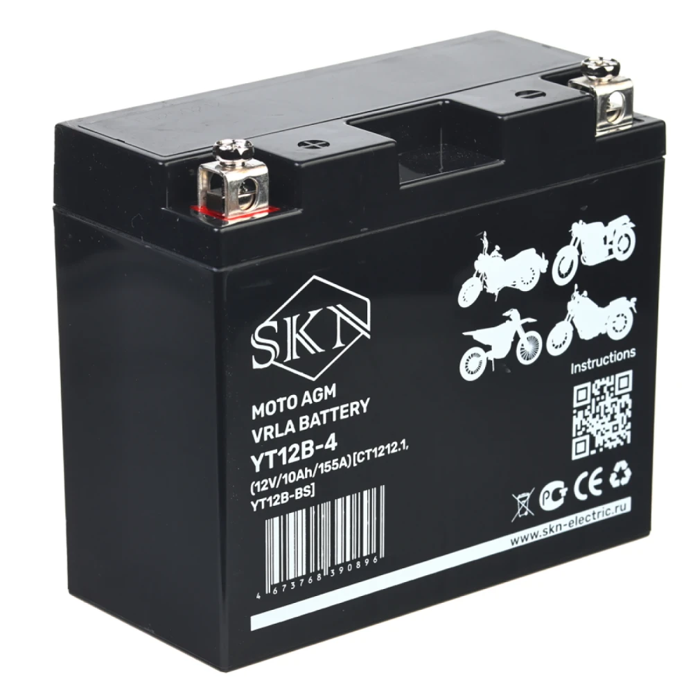 Аккумулятор стартерный для мототехники SKN YT12B-4 (12V/10Ah/155A) [CT 1212.1, YT12B-BS]